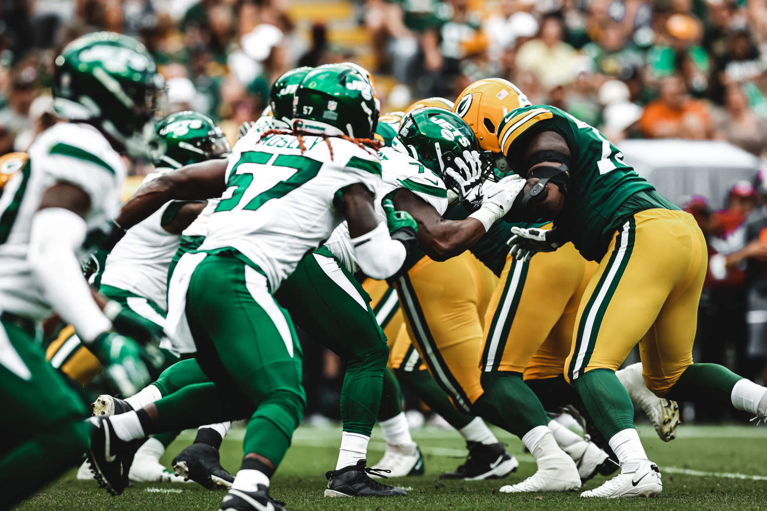 Interior pressure on Aaron Rodgers. Packers RG Royce Newman has looked like the weakest link on Green Bay’s offensive line, allowing 3 sacks and 12 total pressures this year, according to PFF. Quinnen Williams should continue to win his matchups up front, and not letting Rodgers step up in the pocket will create a lot of problems for their offense.