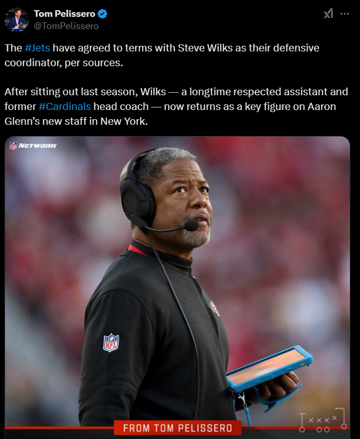 The long-rumored hiring of defensive coordinator Steve Wilks is now a reality according to NFL insider Tom Pelissero.
