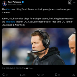 Aaron Glenn continues to build his Jets coaching staff for the 2025 season by adding a QB coach and passing game coordinator. The first addition was QB coach Charles London before it was announced that the team was also adding passing game coordinator Scott Turner.